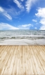 Blue Sky Sea Waves Seaside Wood Floor Picture Backdrop