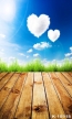 Blue Sky White Heart Shaped Clouds Green Grass Wood Photographic Backdrops