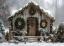 Winter Snow Wooden Cabin Christmas Backdrop New Year Decoration Background