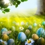Easter Eggs Flowers on Grassland Photography Studio Background