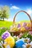 Easter Eggs in Basket on Grassland Flowers Vinyl Photography Easter Backdrops