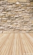 Fashion Simple Wooden Floor Stone Block Wall Background