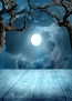 Full Moon Withered Trees Wood Floor Halloween Party Decoration Background