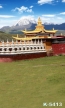 Gold Tone Roof Temple on Green Grassland Scenic Photo Backdrop