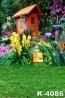 Green Grassland Flowers Small Wood House Scenic Camera Backdrops