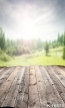 Green Mountain Trees Blurred Background Wood Floor Drop Background