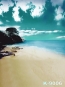 Green Sky Blue Sea Seaside Rocks Beach Photography Backdrop