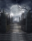 Grey Moon Sky Stone Iron Gate Withered Tree Halloween Backdrops