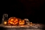 Halloween Party Pumpkin Lanterns Skull Candles on Straw Black Background Camera Backdrops