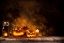 Halloween Pumpkin Lanterns Candle on Wood Floor Background Drops for Photography