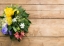 Horizontal Texture Wood Picture Backdrop with Green Leaves Colorful Flowers Bouquet