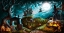 Magical World Castle Flying Witch Scary Pumpkin Halloween Backdrop