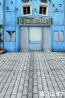 Retro Blue House Brick Road Building Vinyl Photography Backdrops