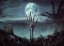 Night Scary Eerie Graveyard Skeleton Broken Hand Skull Evil Full Moon Halloween Backdrop