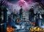 Night Ghost Spooky Skull Scary Cemetary Gate Halloween Backdrop