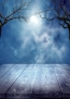Scenic Full Moon Withered Tree Branch Wood Floor Halloween Backdrops