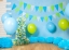Simple Balloon Theme Blue Wall Background Baby Boy 1st Happy Birthday Backdrop Decoration Prop