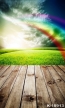 Spring Rainbow over Green Grassland Wood Floor Drop Studios Backdrops
