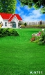 Spring Red Roof White House Green Grassland Scenic Photography Background Props