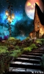 Stone Ladder Pumpkin Moon Shape Halloween Photo Backdrop