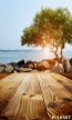 Stones Tree by Seaside Blurred Background Wood Camera Backdrops
