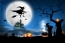 Under The Moon Dark Flying Broom Witch Halloween Backdrop Stage Background Party Decoration Prop