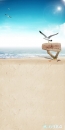 White Seagulls over Sea Beach Backdrop Background for Photography