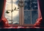 Window Reindeer Flying Over The Night Sky Christmas Backdrop Photography Background