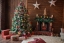 Wood Wall Fireplace Christmas Tree Backdrop Party Stage Photography Background