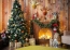 Wood Wall Fireplace Christmas Tree Backdrop Photo Booth Stage Photography Background Decoration Prop